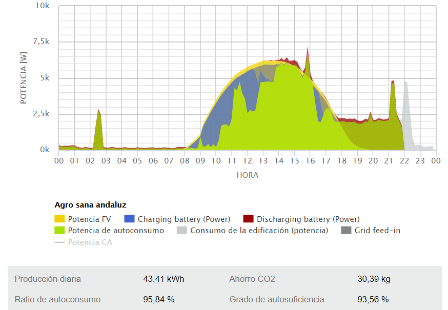 A destacar el grado de autosuficiencia tan grande y el ratio de autoconsumo que se ha conseguido con esta solución que era el objetivo principal que buscaba el cliente.